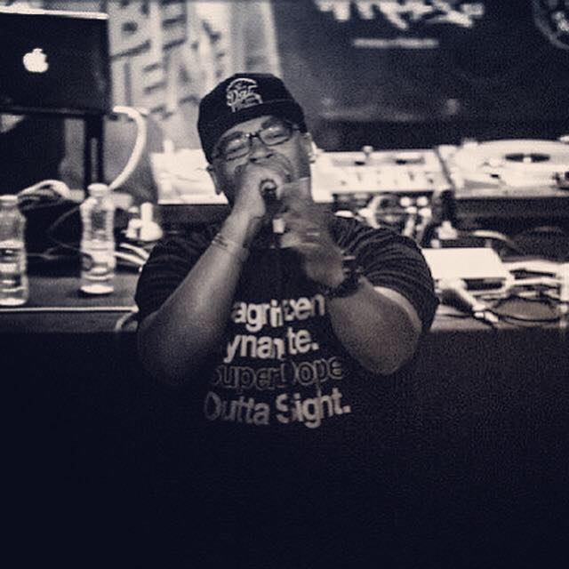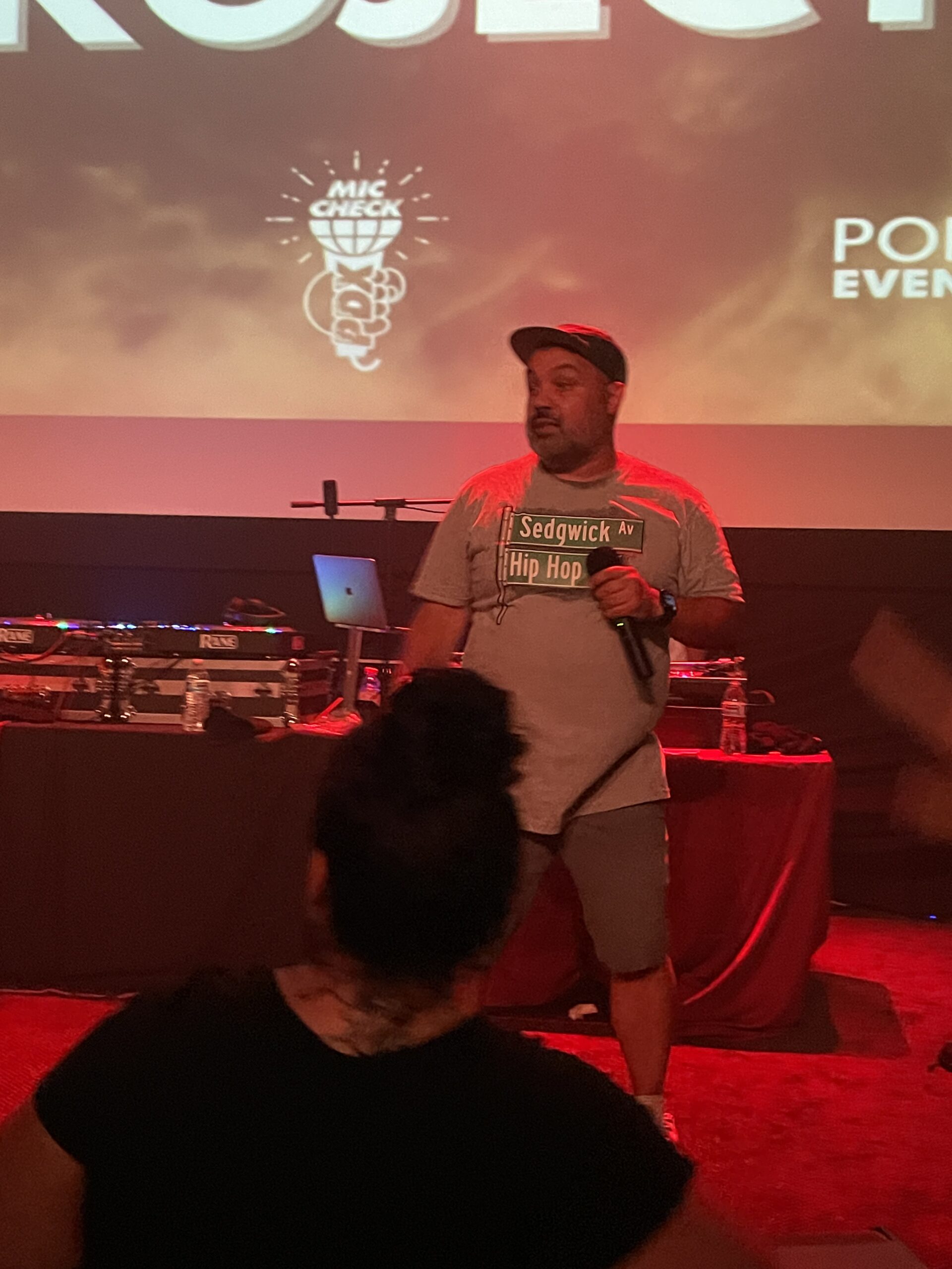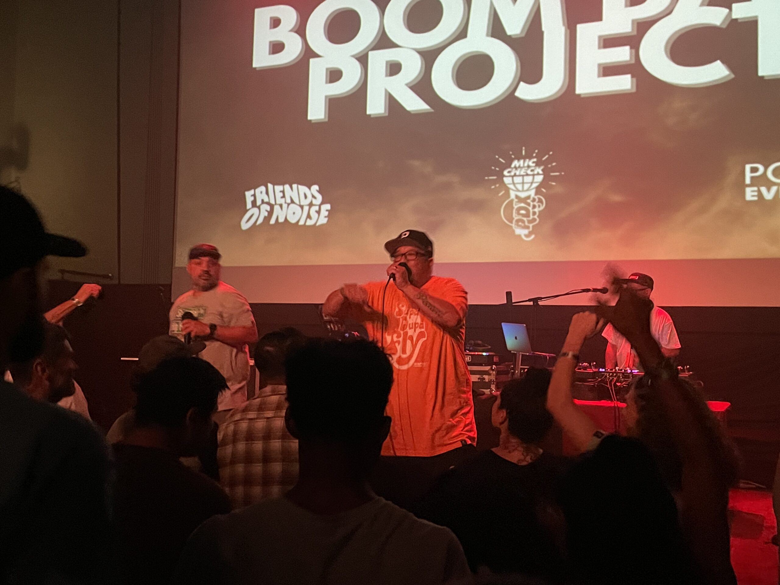 Destro of Boom Bap Project In Our Hop Hop Blvd Tee On Stage @ Mic Check 7