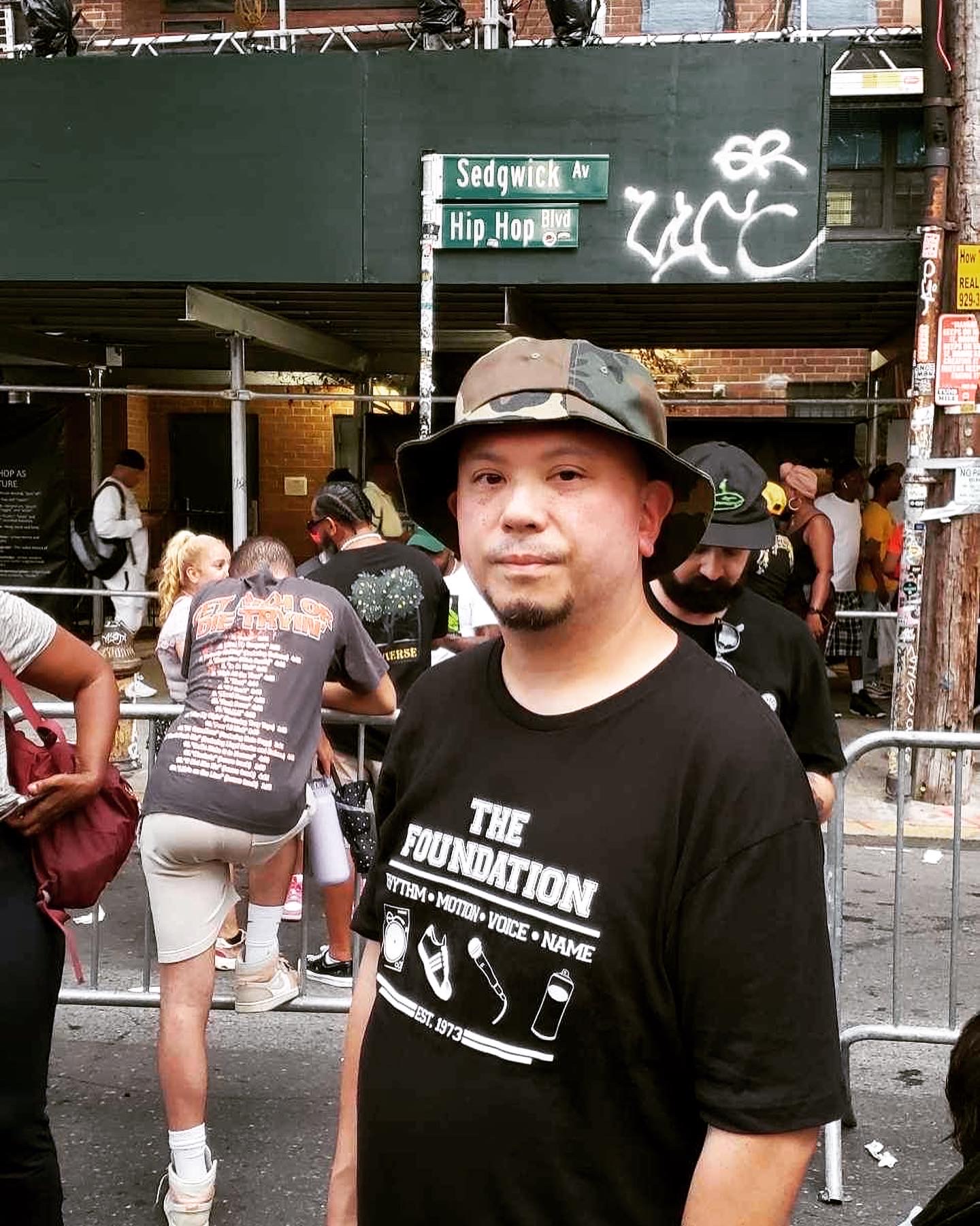 DJ Grimrock in NYC for Hip Hop 50th rocking the Akepele – The Foundation Tee