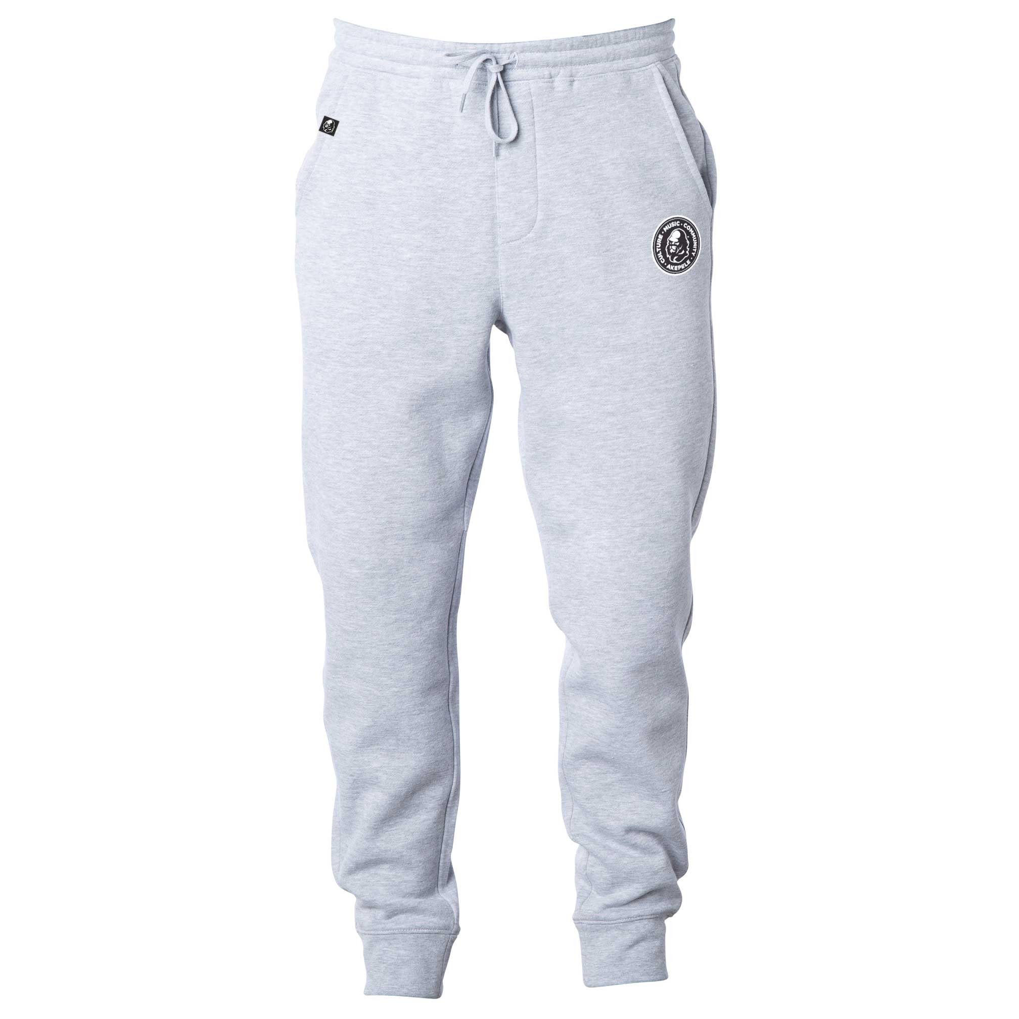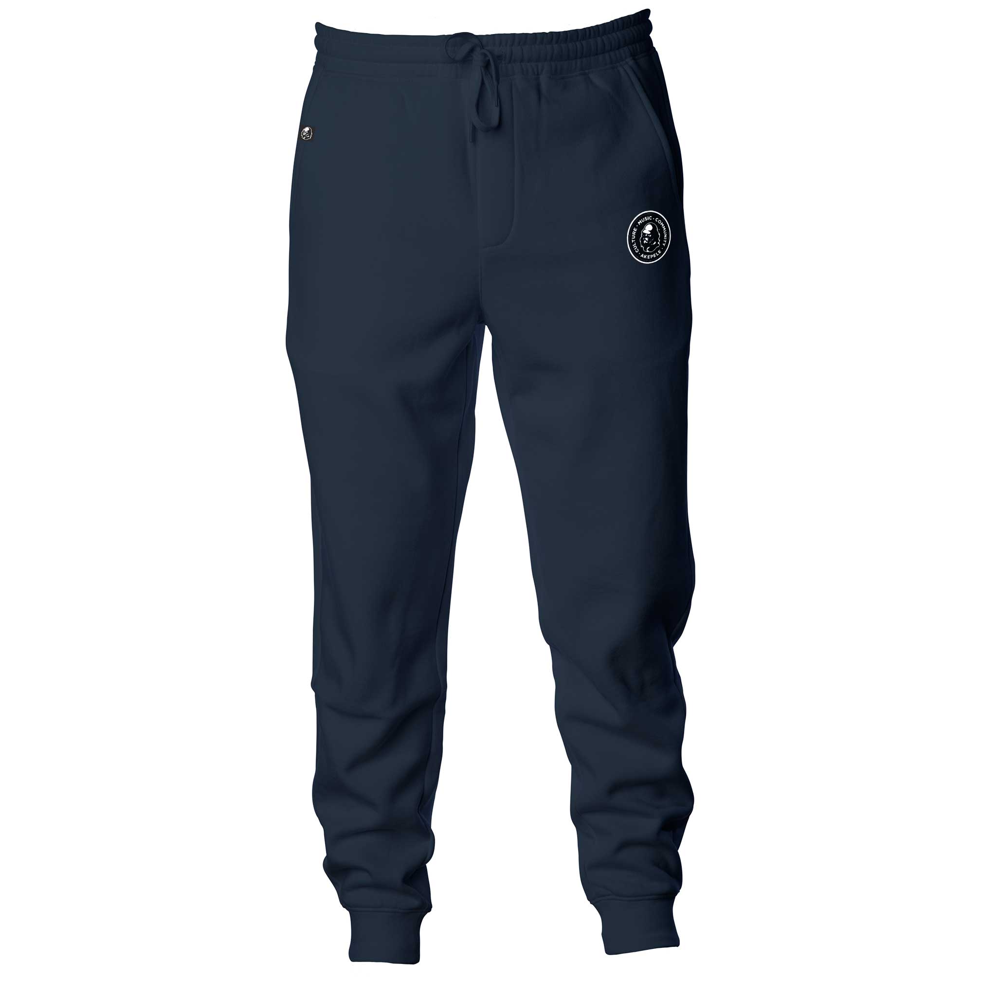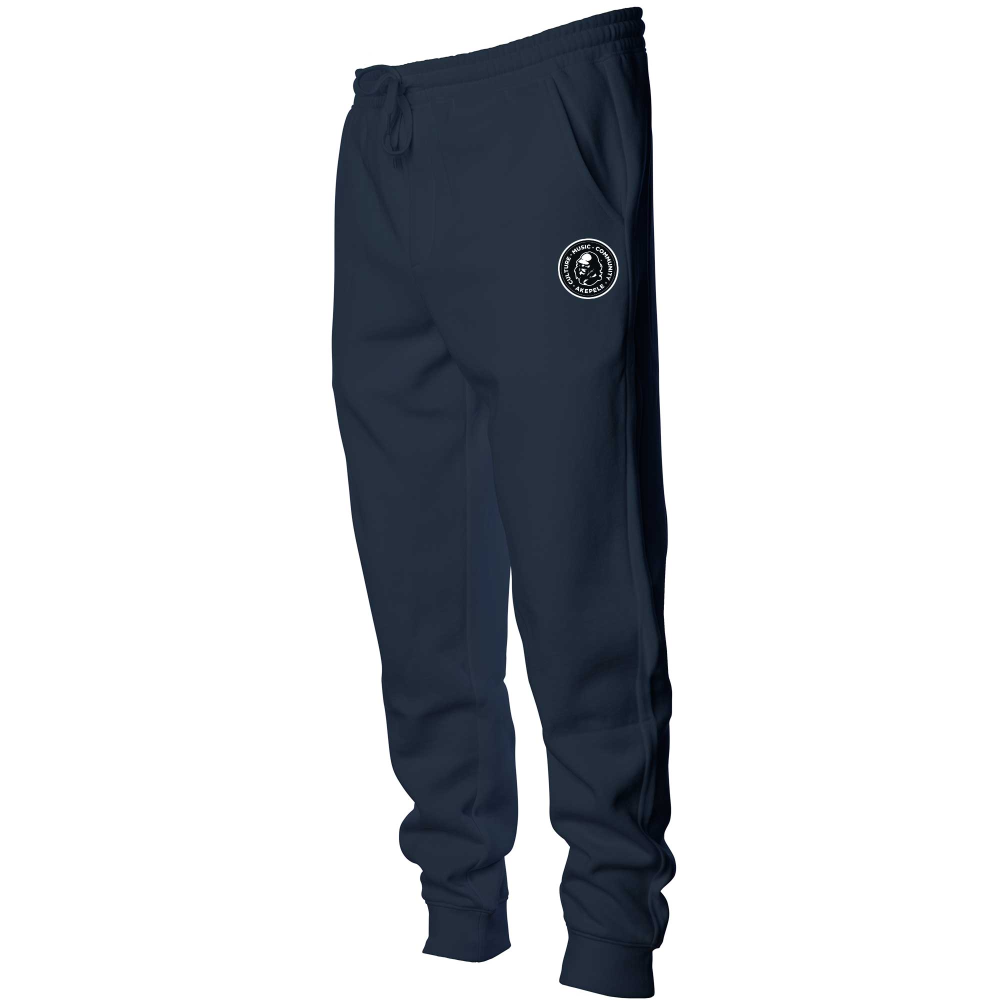 New Akepele jogger design. The On A Mission design is the newest brand piece showcasing 3 key points in Akepele’s mission statement: Culture, Music, & Community. This garment features a single logo on the left leg with a sewn tag on the right pocket. It’s a subtle placement to let the garment shine.